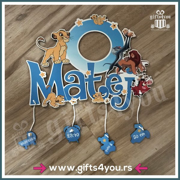 Poručite unikatan poklon sa imenom Vašeg mališana i njegovim podacima sa rodjenja, u kombinaciji sa ramom ili satom Za svaki naš poklon se izdvaja bitno vreme kako bi se dobio unikatan i personalizovan sat, njegova veličina je u proseku 42 cm u širinu, pravi se od kvalitetnog materijala sa jarkim bojama i daje fenomenalan utisak na zidu. Sigurni smo da će ovaj poklon sat oduševiti već na prvi otkucaj.