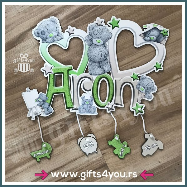 Poručite unikatan poklon sa imenom Vašeg mališana i njegovim podacima sa rodjenja, u kombinaciji sa ramom ili satom Za svaki naš poklon se izdvaja bitno vreme kako bi se dobio unikatan i personalizovan sat, njegova veličina je u proseku 42 cm u širinu, pravi se od kvalitetnog materijala sa jarkim bojama i daje fenomenalan utisak na zidu. Sigurni smo da će ovaj poklon sat oduševiti već na prvi otkucaj.