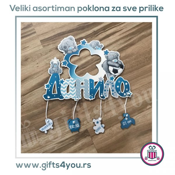Poručite unikatan poklon sa imenom Vašeg mališana i njegovim podacima sa rodjenja, u kombinaciji sa ramom ili satom Za svaki naš poklon se izdvaja bitno vreme kako bi se dobio unikatan i personalizovan sat, njegova veličina je u proseku 42 cm u širinu, pravi se od kvalitetnog materijala sa jarkim bojama i daje fenomenalan utisak na zidu. Sigurni smo da će ovaj poklon sat oduševiti već na prvi otkucaj.