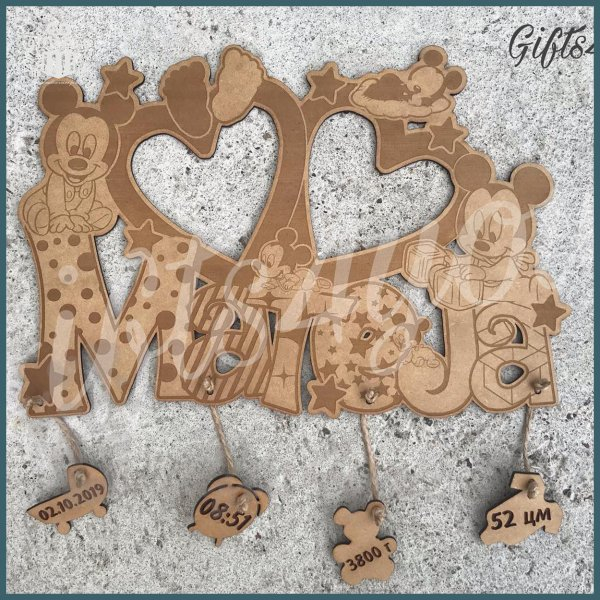 Poručite unikatan poklon sa imenom Vašeg mališana i njegovim podacima sa rodjenja, u kombinaciji sa ramom ili satom Za svaki naš poklon se izdvaja bitno vreme kako bi se dobio unikatan i personalizovan sat, njegova veličina je u proseku 42 cm u širinu, pravi se od kvalitetnog materijala sa jarkim bojama i daje fenomenalan utisak na zidu. Sigurni smo da će ovaj poklon sat oduševiti već na prvi otkucaj.