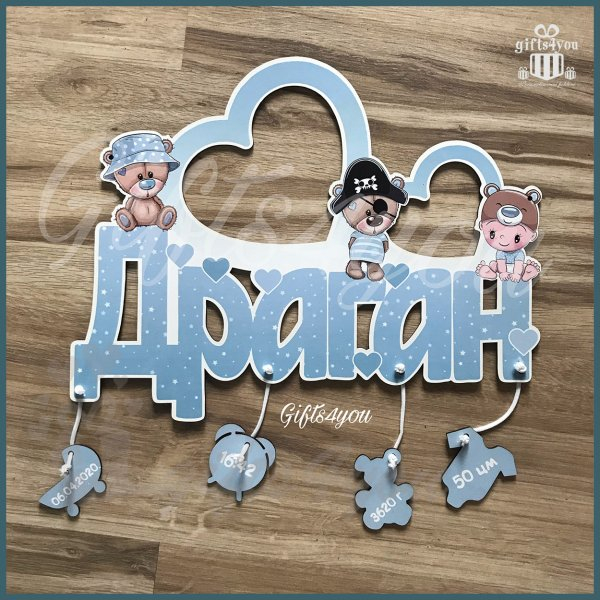 Poručite unikatan poklon sa imenom Vašeg mališana i njegovim podacima sa rodjenja, u kombinaciji sa ramom ili satom Za svaki naš poklon se izdvaja bitno vreme kako bi se dobio unikatan i personalizovan sat, njegova veličina je u proseku 42 cm u širinu, pravi se od kvalitetnog materijala sa jarkim bojama i daje fenomenalan utisak na zidu. Sigurni smo da će ovaj poklon sat oduševiti već na prvi otkucaj.