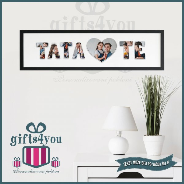 Ram sa slikama je jedinstven poklon koji je u potpunosti napravljen od Vaših fotografija. Dimenzije rama su 80x20 cm, dok su tanke lajsne rama drvene u crnoj boji. Broj slika koje sadrži jedan ram sa imenima zavisi od dizajna, mogu se raditi sa tekstom po želji.