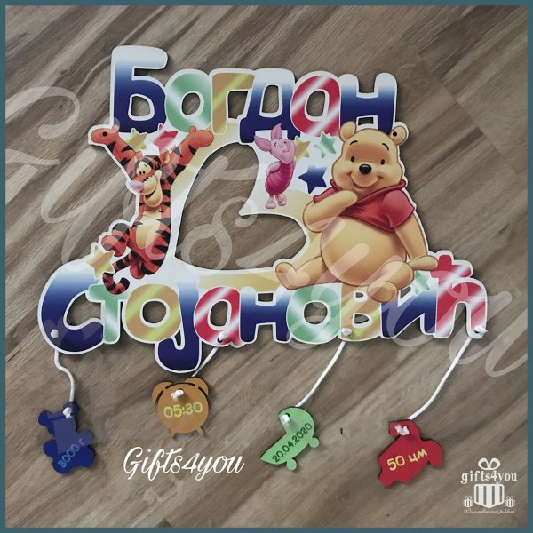 Poručite unikatan poklon sa imenom Vašeg mališana i njegovim podacima sa rodjenja, u kombinaciji sa ramom ili satom Za svaki naš poklon se izdvaja bitno vreme kako bi se dobio unikatan i personalizovan sat, njegova veličina je u proseku 42 cm u širinu, pravi se od kvalitetnog materijala sa jarkim bojama i daje fenomenalan utisak na zidu. Sigurni smo da će ovaj poklon sat oduševiti već na prvi otkucaj.