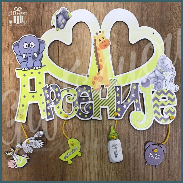 Poručite unikatan poklon sa imenom Vašeg mališana i njegovim podacima sa rodjenja, u kombinaciji sa ramom ili satom Za svaki naš poklon se izdvaja bitno vreme kako bi se dobio unikatan i personalizovan sat, njegova veličina je u proseku 42 cm u širinu, pravi se od kvalitetnog materijala sa jarkim bojama i daje fenomenalan utisak na zidu. Sigurni smo da će ovaj poklon sat oduševiti već na prvi otkucaj.